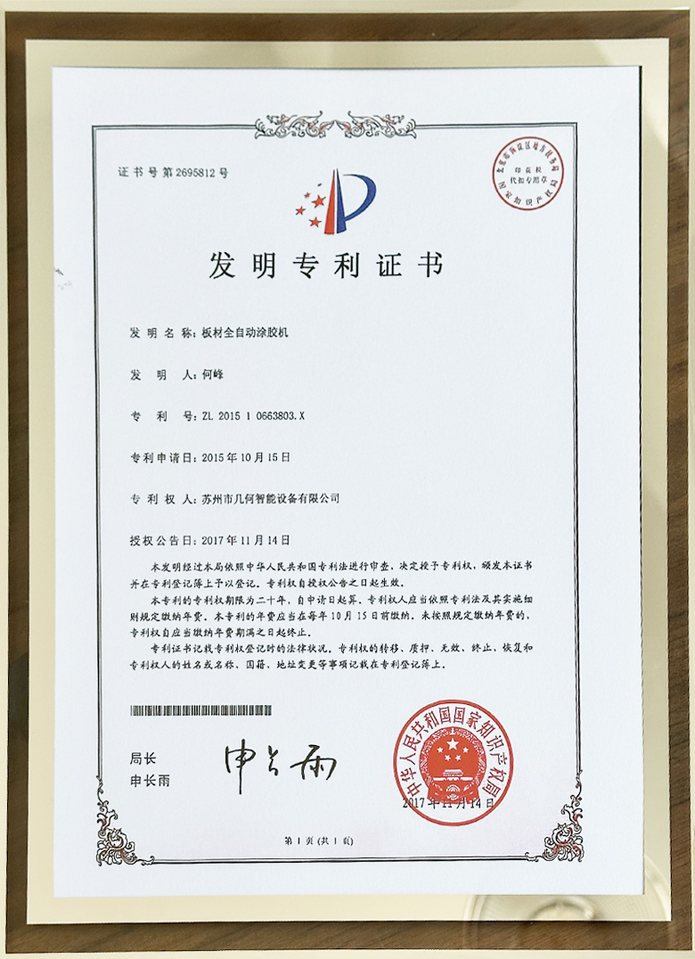 几何智能是一家集设计、生产、销售、安装调试、维护为一体的新型自动化企业及流体控制解决方案商,公司坐落于美丽的江南水乡苏州同里古镇,公司有强大的研发团队,在2015年自主研发的板材涂胶机获得国家发明专利。